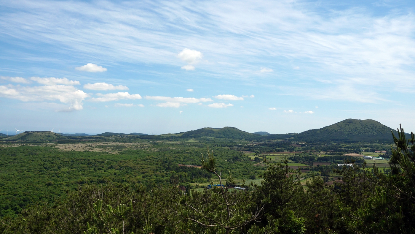 - 사방으로 터진 전망이 매우 뛰어남. 바다 쪽으로 지미봉 우도 일출봉 조망이 가능하며, 다랑쉬 돝오름부터 한라산에서 알밤오름까지 보임.