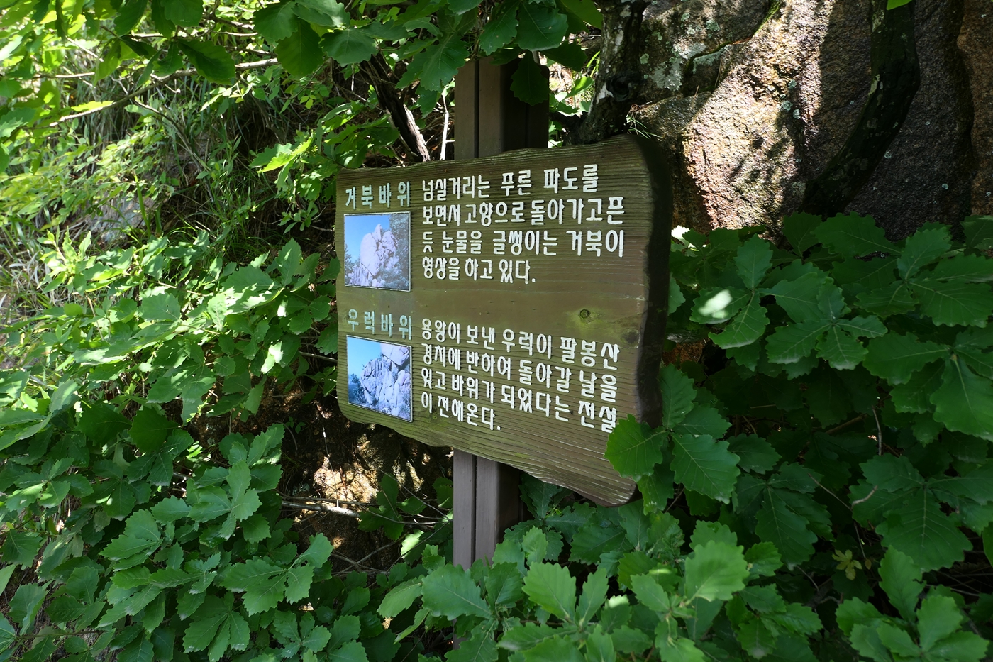 ☞ 특이점 – 1봉에서 4봉 사이가 바위길로 다소 겁나는 구간이 있기는 하지만 위험한 정도까지는 아니다. 교통편이 불편해서 양길리나 팔봉에서 시작하여 어송리로 하산하는 것이 좋다. 바위 모양도 다양하고 전망도 뛰어나다.