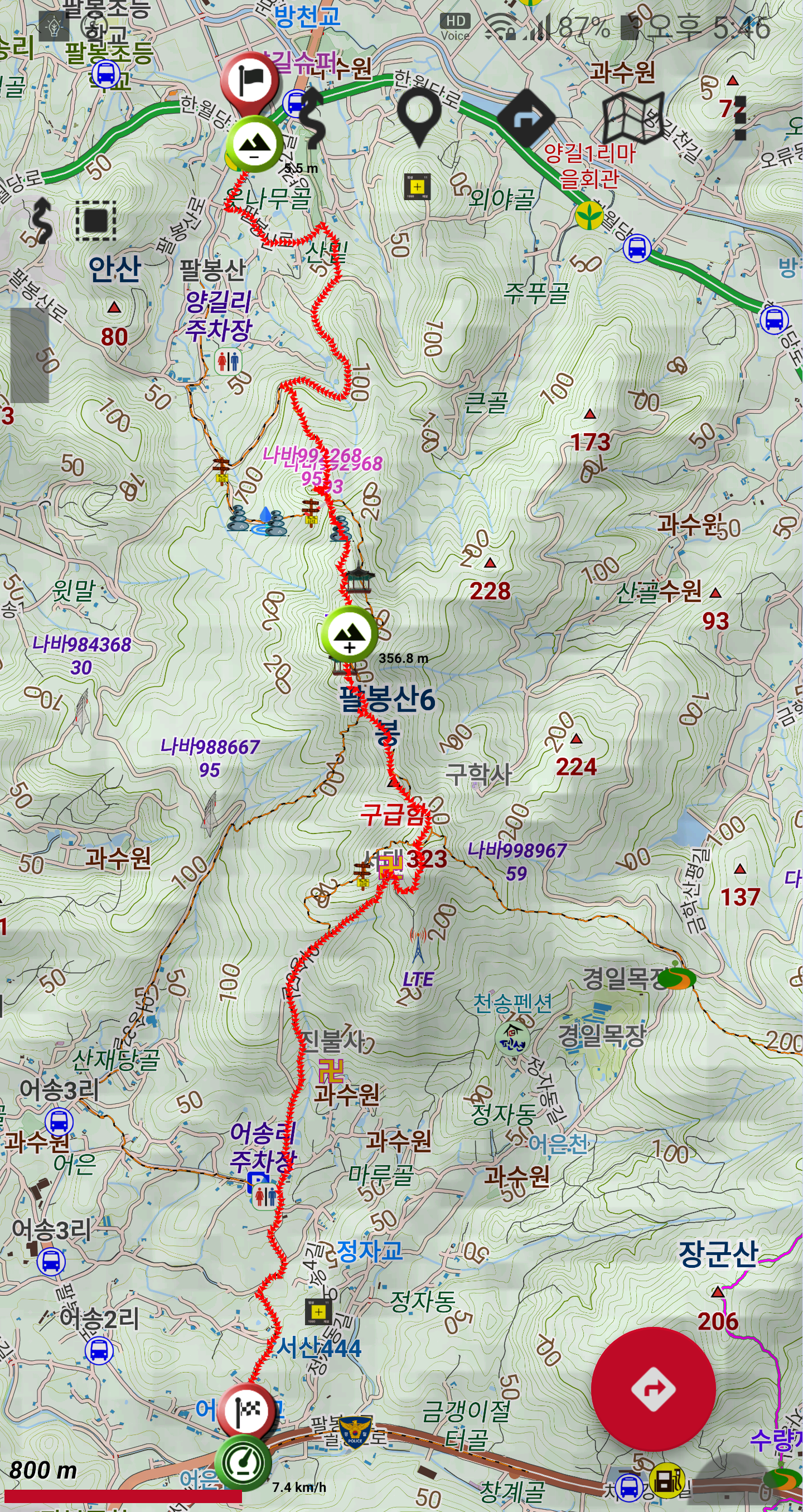 ☞ 6.5km 해발고도 364m 고도상승 450m, 순 이동시간 2시간 40분