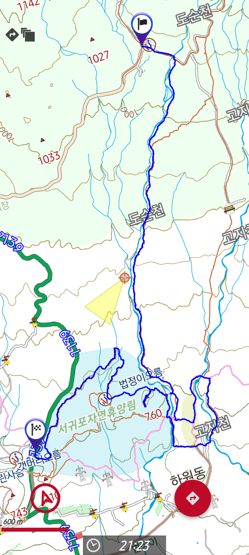 ☞ 경로 : 영실매표소 정류장 -( 하원수로길) - 도순천 - 법정사지 - 법정악 - 서귀포휴양림 정류장