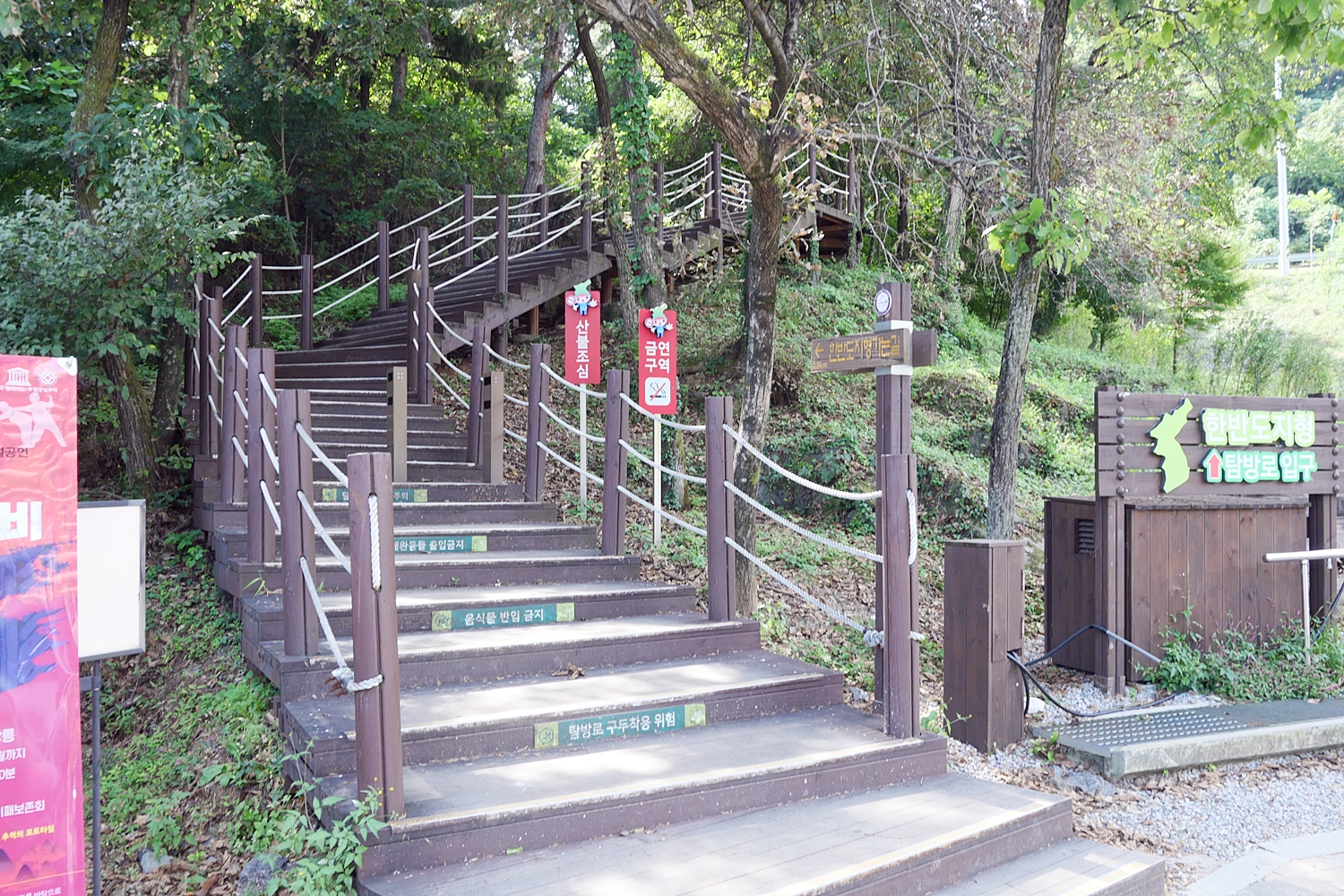 주위에 이리저리 뚫려 있는 오솔길을 따라가 보니 한반도 팔도강산트레킹이라는 팻말이 있다. 요걸 따라가다 돌아왔지만 아마 한반도 지형을 강 밖에서 멀리 둘러가는 길인가 싶은데 해설이나 안내판은 부실하다. 잘 활용하면 요것도 자원이 될 것이 아닌가 하는 생각도 해본다.