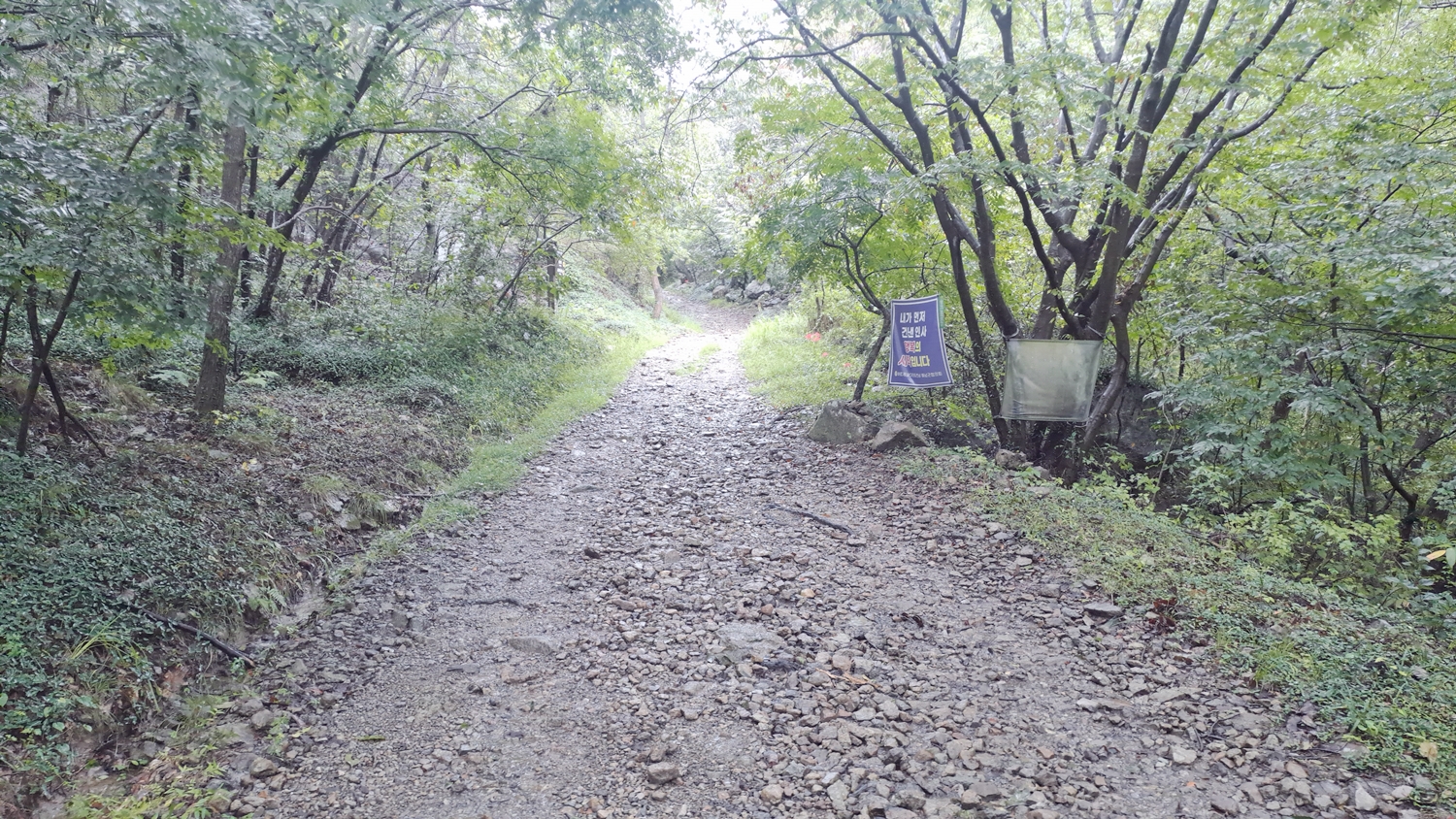 잠시 비가 그친다. 등산로 입구인 금강저수지로 향한다. 요거라도 구경하자고. 나서니 마음이 바뀐다. 이왕 나섰으니 올라보자고. 저수지 가는 도중에 비가 추적추적 내린다. 사실 우비를 쓰면 땀으로 젖어 비 맞는 것이나 별로 다른 바가 없다. 그래도 배낭에 레인커버하고 우비를 꺼내 입는다.