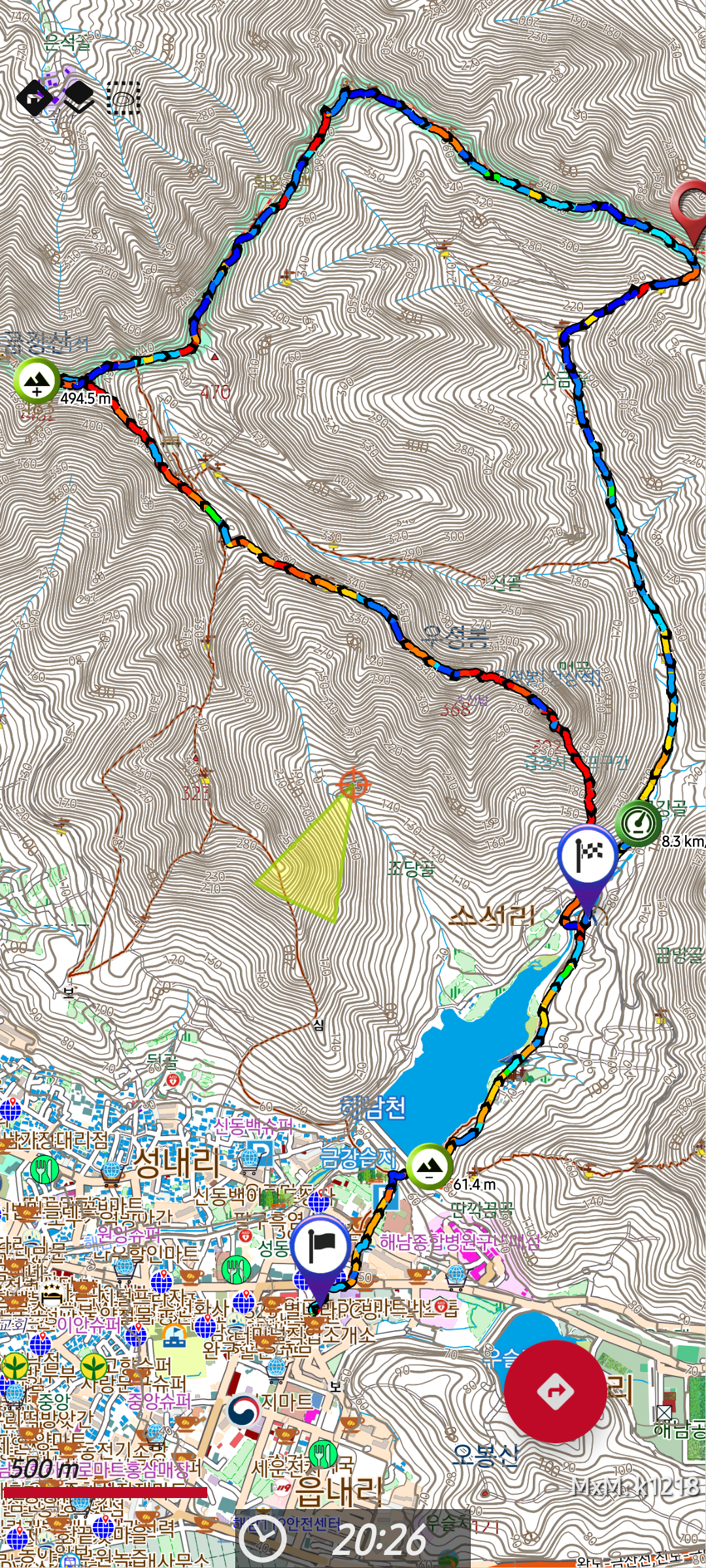 ☞ 8km 고도상승 460m 순이동시간 2시간50분.