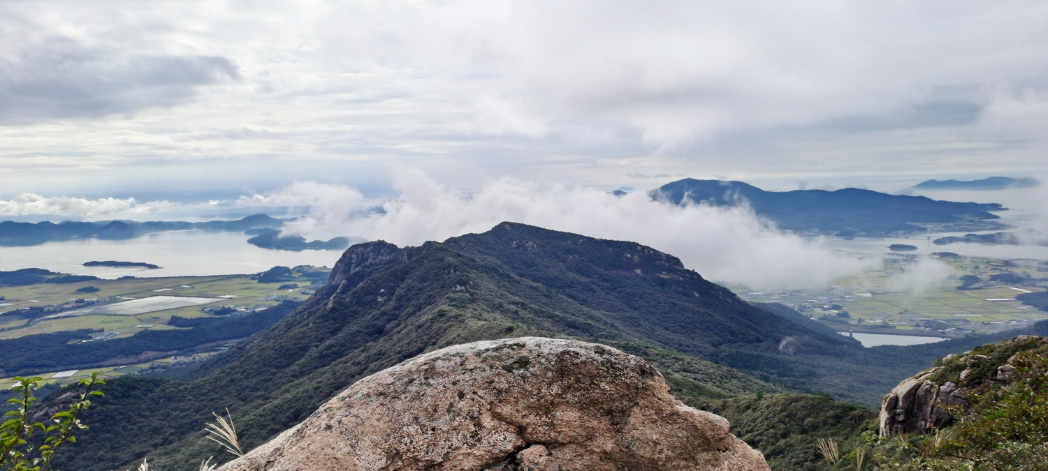 예정대로라면 오늘은 달마산을 답사하는 날인데, 날씨를 고려해서 그래도 험도가 낮을 것 같은 두륜산으로 바꿨다. 역시 날씨는 비날씨, 많지는 않지만 버스 와이퍼를 사용할 만큼은 비가 내린다. 그래도 기대를 해 본다. 괜찮은 선택이었던 듯. 오심재 못미처 조금씩 오던 비는 그친다. 훤한 날씨는 아니더라도.