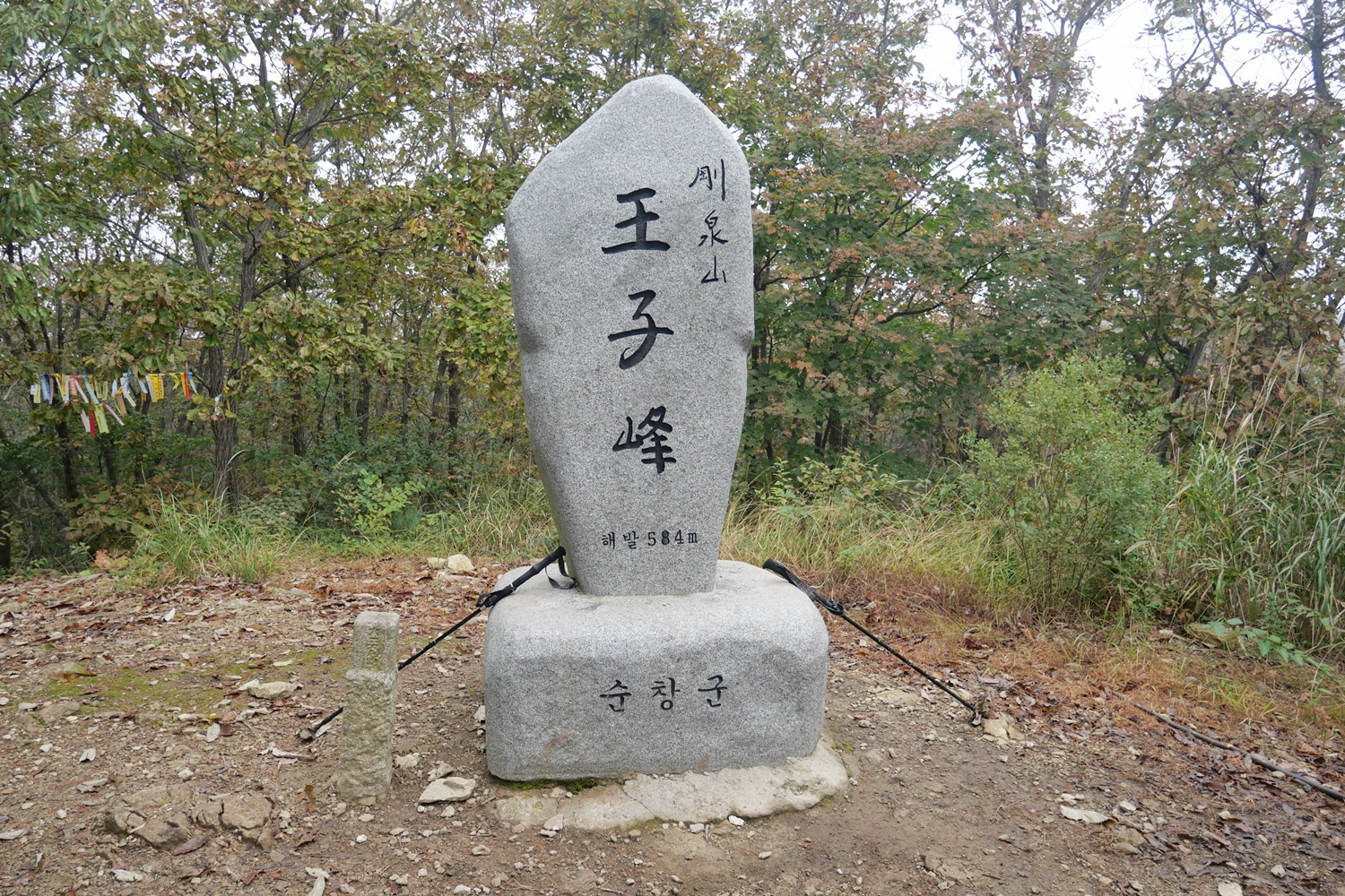 전망은 하나도 없다. 흙길의 특징, 왕자봉에서 전망이 다소 트였지만, 안개 날씨로 흐릿하여 볼 게 없다. 정상석 뒷면에 새겨진 호남의 소금강이라는 말이 무색하다. 저번에는 왕자봉을 거쳐 현수교로 갔던 것 같은데 이번에는 코스를 달리해서 제2 강천호수를 멋진 모습을 기대하면서 형제봉으로 향한다. 제1 형제봉은 등산로가 그냥 지나치게 되어 있고, 제2 형제봉은 정상을 지나지만 역시 볼 게 없다. 형제봉 내리막길부터 길이 다소 나빠지고 경사도 급해지나 조심해서 지나면 문제 될 것은 전혀 없다. 제2 강천호수 가까이 와서야 삐죽하게 조망터가 나오는데, 날씨가 좋았으면 멋졌을 거라는 생각을 하며 인증사진을 담지만, 역광에다 날씨도 나빠서 별로다.