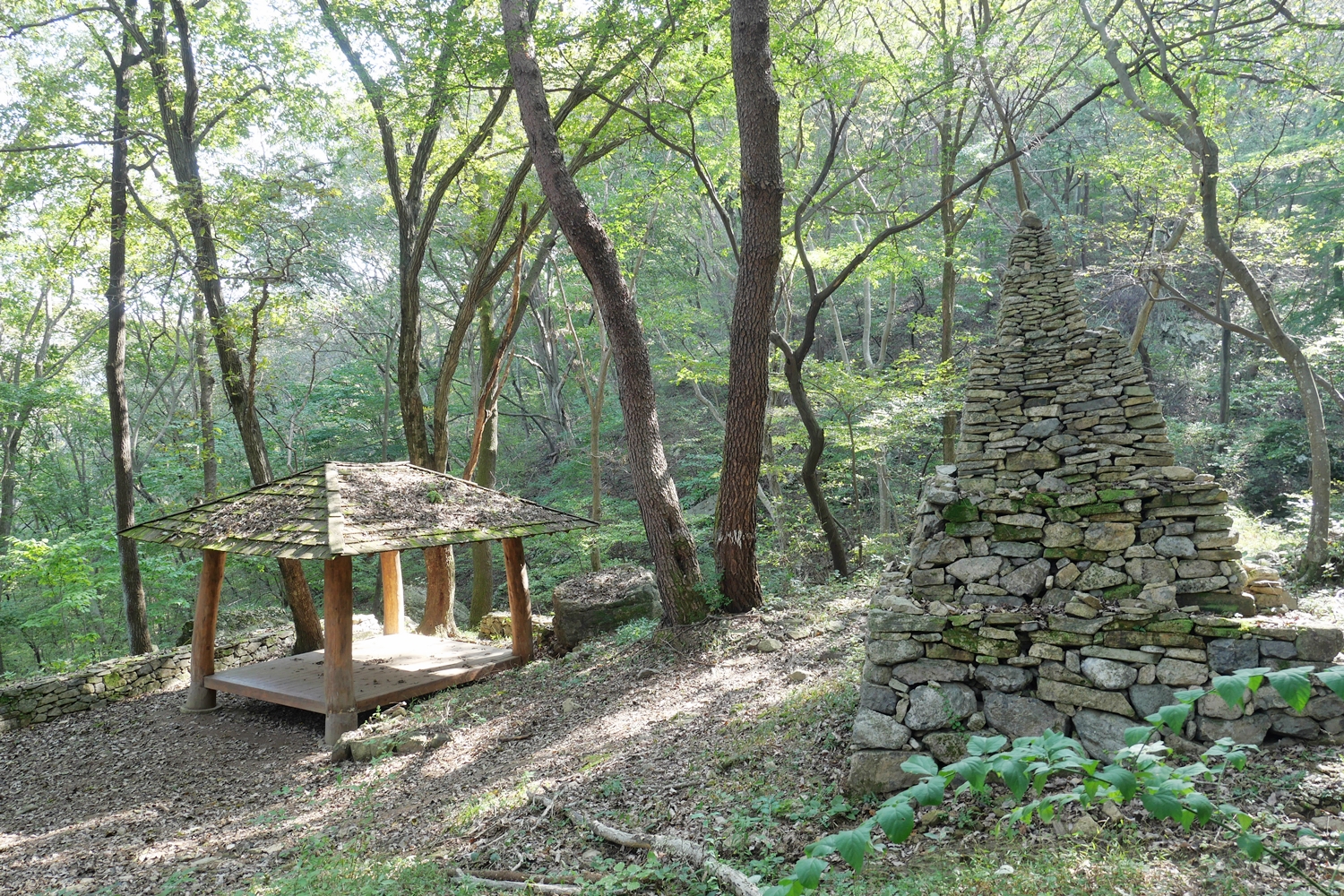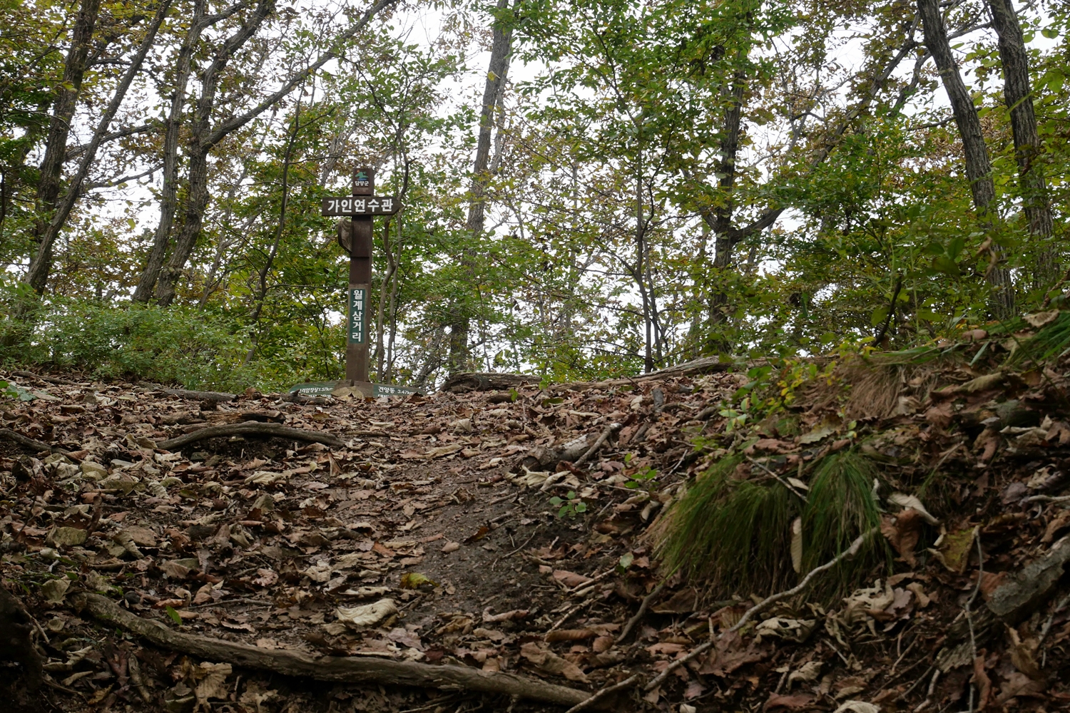월계리 마을 안길을 지나 본격적인 등산로가 시작된다. 처음에는 돌길, 게다가 길이 좁아 잡목 조릿대 등으로 다소 불편한 곳도 있다. 조금 지나니 흙길에 자갈길이 펼쳐진다. 계곡을 따라 오르는 등산로는 능선까지 깔딱고개 그 자체이다. 전망도 전혀 없다. 9년 전 동료교사와 함께 했던 산행 때보다 조건은 다소 다르지만 10여 분이 덜 걸린 게 아직은 체력이 괜찮은 것 같아 기분은 괜찮았다.