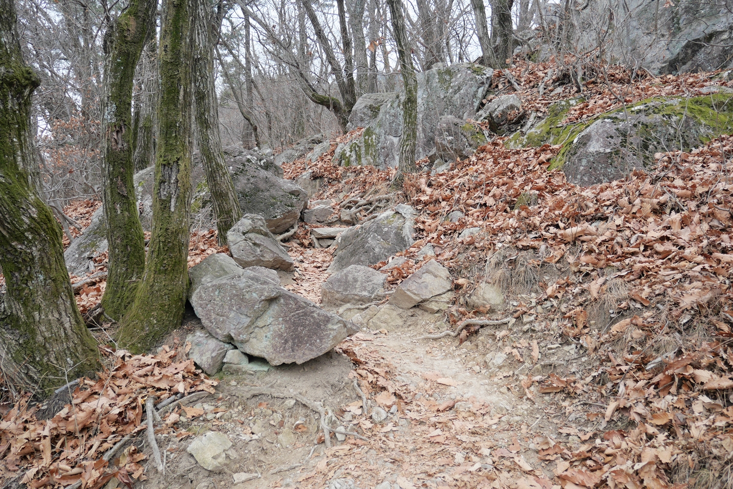 그러나 하산길이 짧은 급경사 후에 길게 완경사가 이어지는 경우가 많아서 무릎이나 발목에 대한 부담이 덜한 게 발목이 안 좋은 나에게는 너무나 다행이었다,