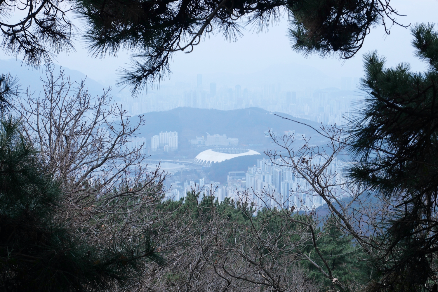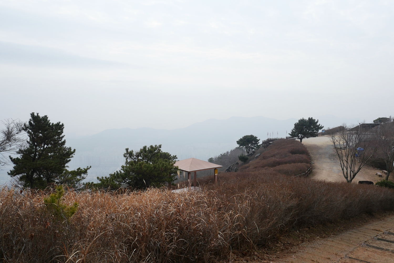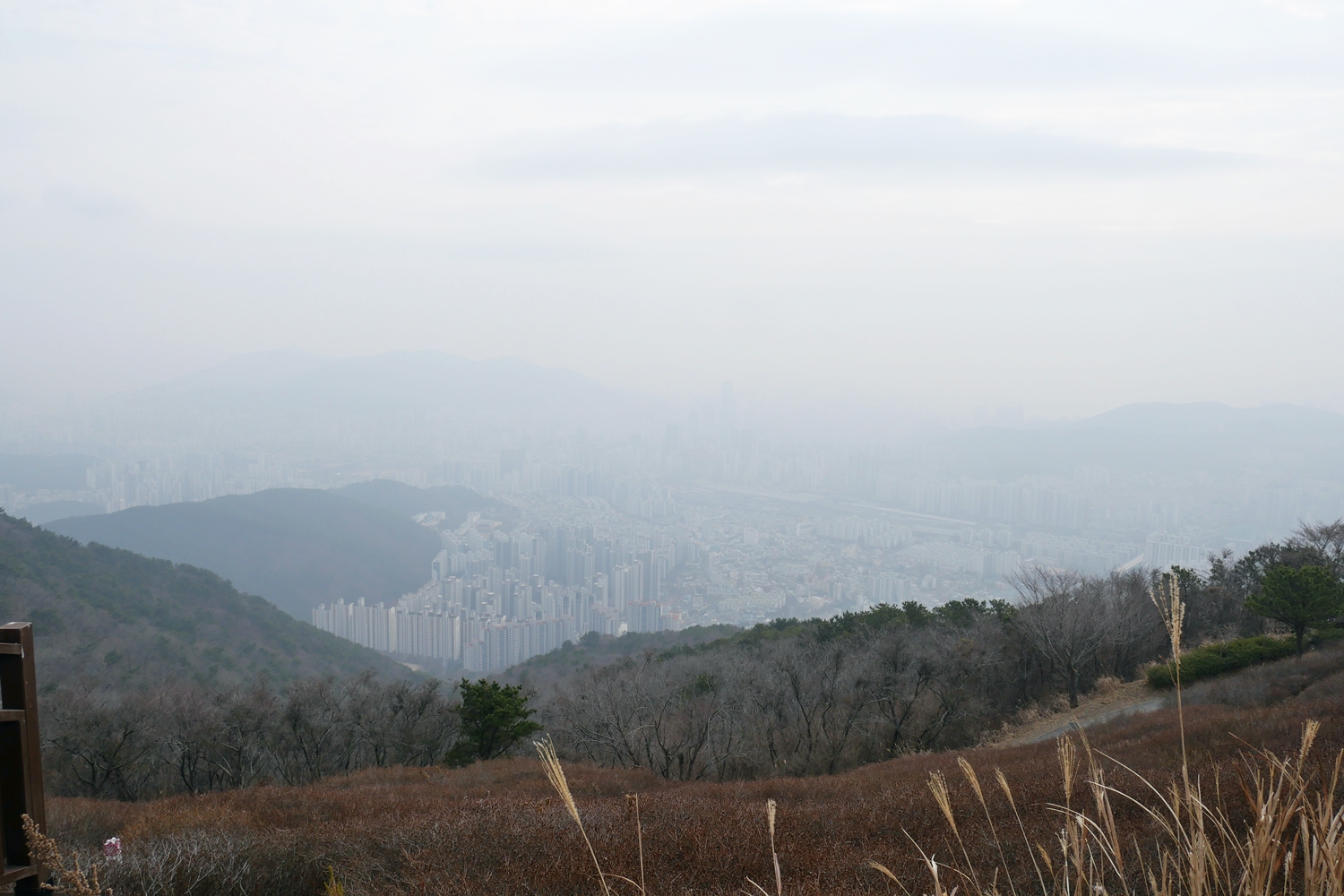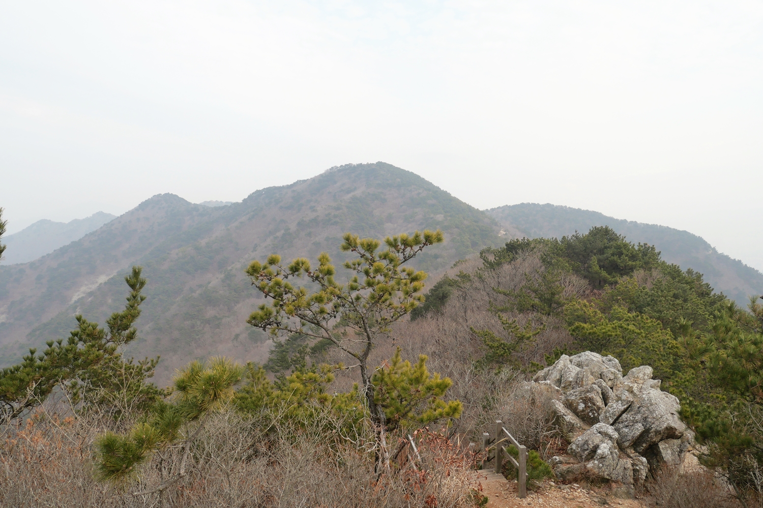 매봉이까지 오른 후부터 백양산을 지나 애진봉까지는 길이 비교적 좋은 편이다. 전망도 빼어나다. 특히 백양산에는 데크전망대도 만들어 놓았고 사방이 훤히 트였는데, 4박5일 산행 중 미세먼지가 가장 심해서 뿌연 전망에 너무나 아쉬웠다,